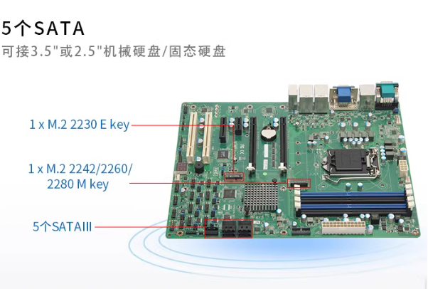 5個SATA3.0接口的配備,不僅提供豐富的存儲擴展能力,還支持RAID 0/1/5/10等多種磁盤陣列模式,可以提高數(shù)據(jù)存儲的安全性和讀寫性能,滿足工業(yè)生產(chǎn)中對數(shù)據(jù)快速存儲和訪問的需求。
